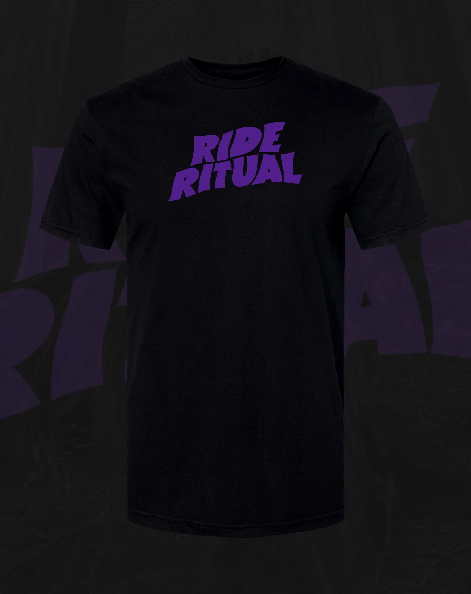Tell No Tales Raven design screen printed on Premium light weight 65% poly/ 35% cotton tech tee in Moody Blue on Heather Graphite.